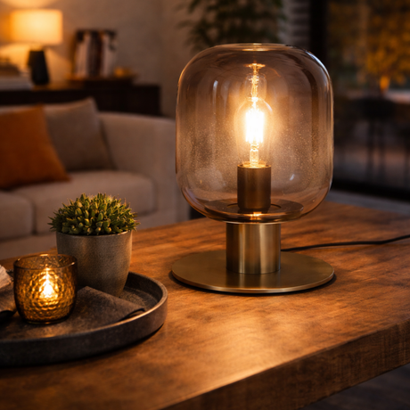 Tafellamp Laura - Messing met Smoke glas