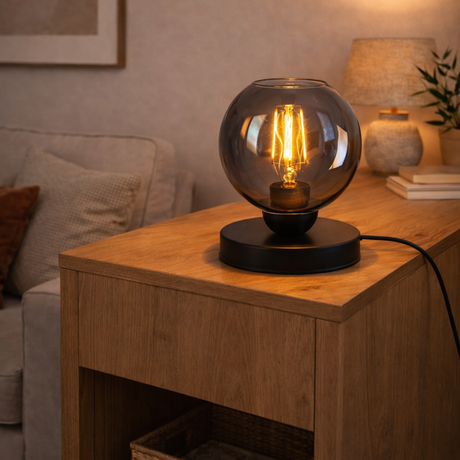 Tafellamp Tess - Zwart met Smoke glas