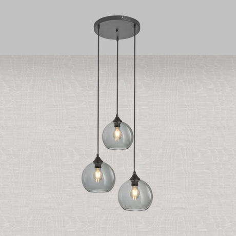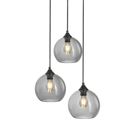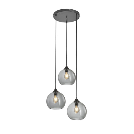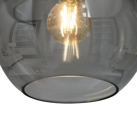 Hanglamp 3-Lichts Bol Rookglas Industrieel Woonkamer Eetkamer Smoke Zwart Grey