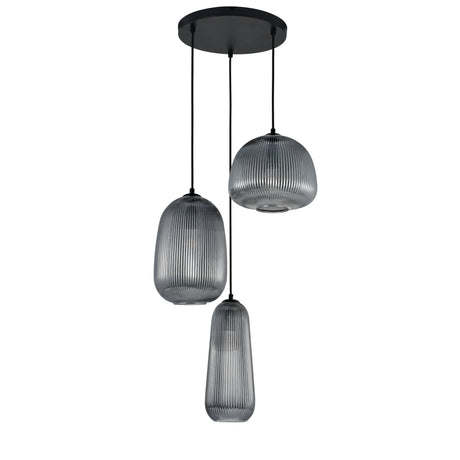 Hanglamp Zwart geribbeld Smoke Glas – 3-Lichts - Arno