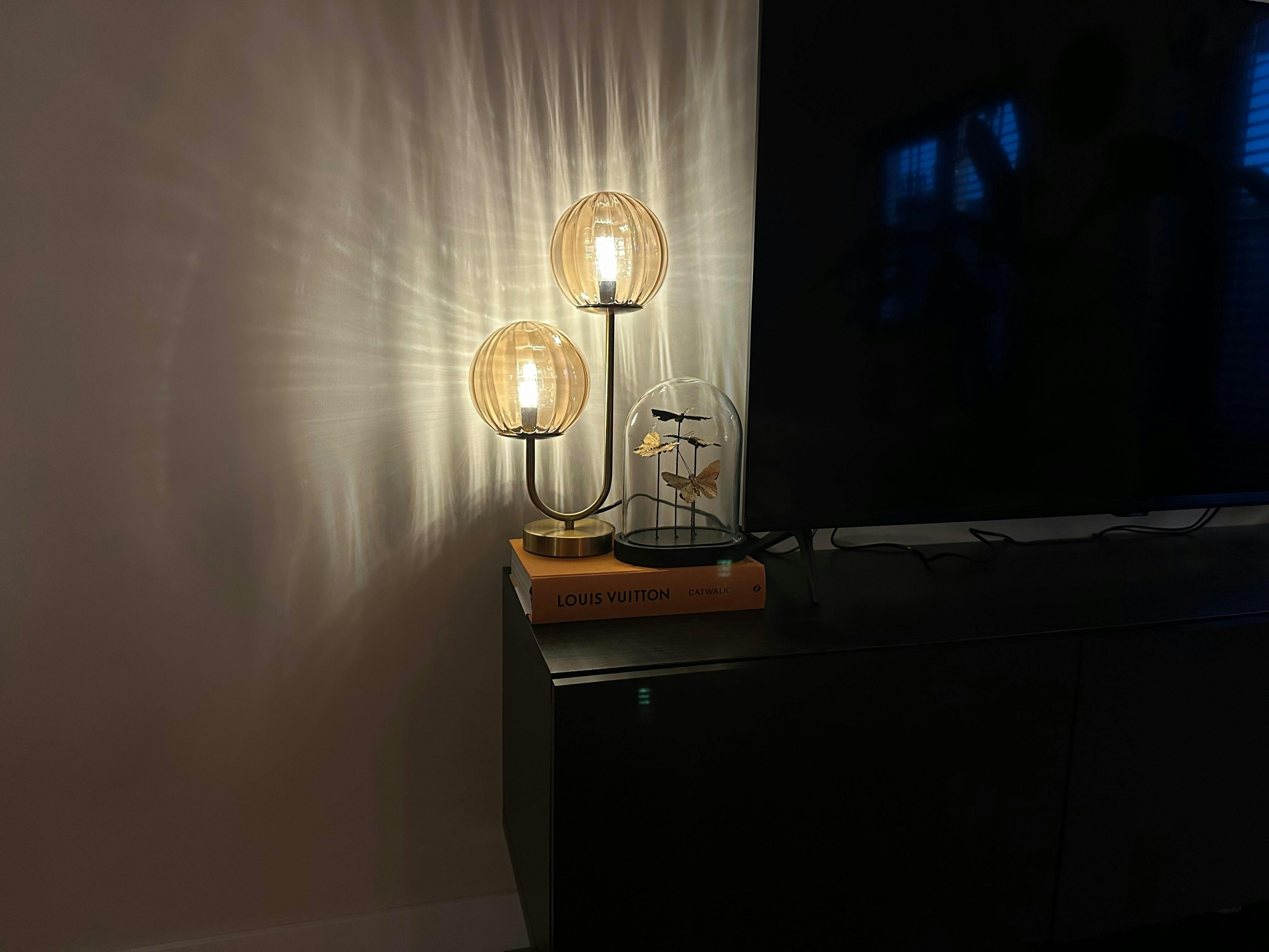De warme ambertint van het glas verzacht het licht en creëert een sfeervolle en uitnodigende ambiance in elke ruimte. De lamp is uitgerust met twee G9-fittingen (max. 40 Watt per fitting, geschikt voor LED), zodat je zelf de gewenste lichtbronnen kunt kiezen en de sfeer naar wens kunt bepalen.