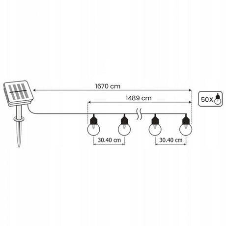 Solar Tuinslinger – 50x LED Bollen – 16,7m – Warm Wit 3000K