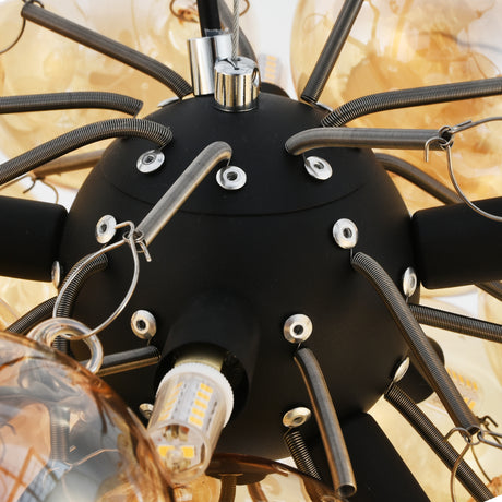 Hanglamp Marie- Zwart met fade glas - 5 lichtpunten - Rond
