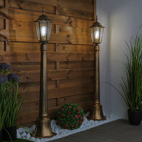 Adviesprijs:Reguliere prijs €44,99Nu:Verkoopprijs €34,99Eenheid prijs /Niet beschikbaar Tuinlamp – Lage Buitenlantaarn op Paal – 1 m Hoog – E27 – Patina