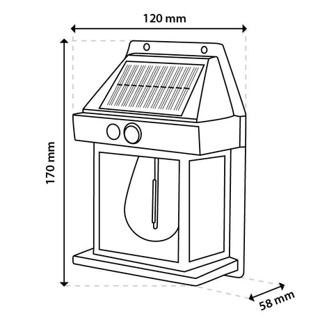 Adviesprijs:Nu:Reguliere prijs €24,99Eenheid prijs /Niet beschikbaarSolar LED Wandlamp – Gevellamp 3000K, IP44 met Bewegings- en Schemersensor
