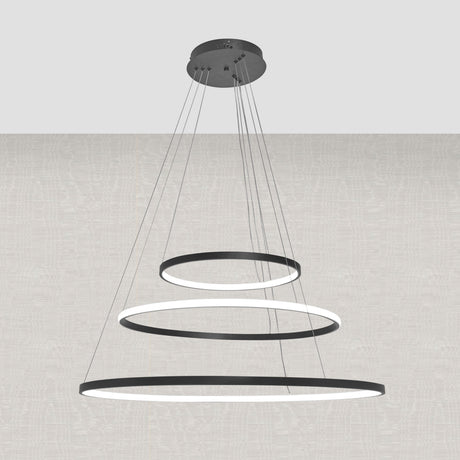 Design Hanglamp Zwart - Dimbaar Led - Drie Ringen - In Hoogte Verstelbaar - Eetkamer - Woonkamer