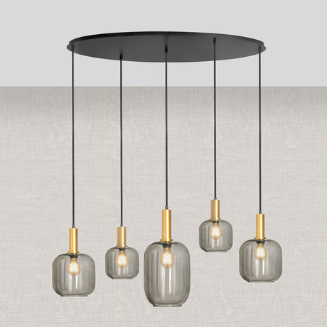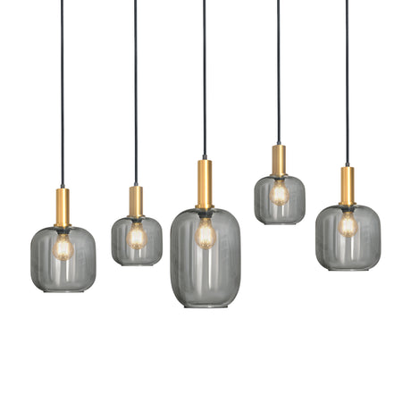 Hanglamp ovaal – zwart met gouden accenten en smoke glas, 5-lamps