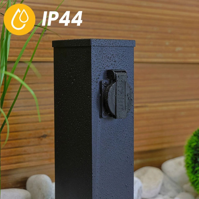 Deze weerbestendige buitenpaal met 2 geaarde 230V stopcontacten (TÜV-gecertificeerd) is ideaal voor tuin, terras of oprit. Met een maximale belasting van 16A, schroefbasis en IP44-bescherming, is hij geschikt voor tuinverlichting, elektrisch gereedschap of buitenfeesten.